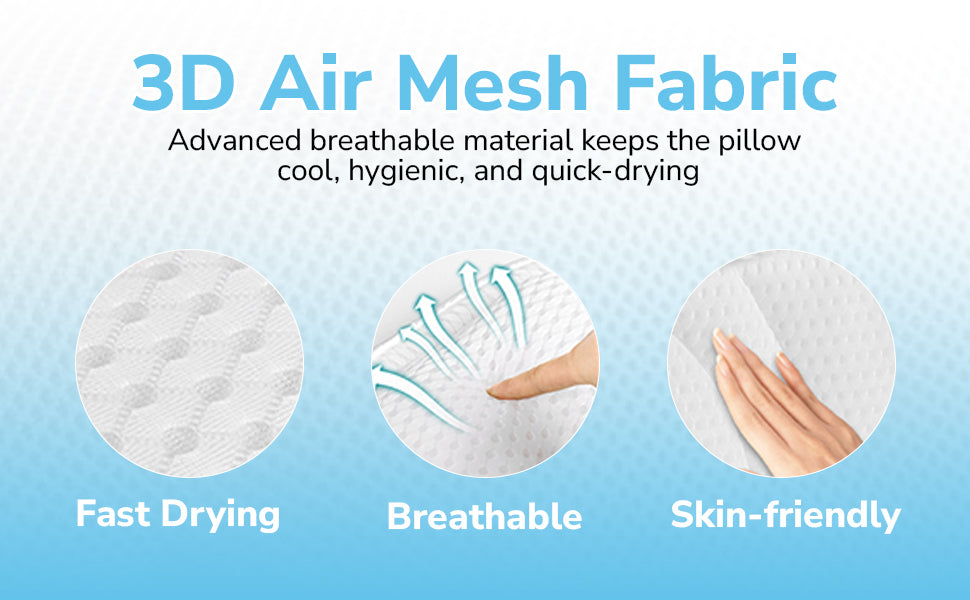 Crafted with advanced 3D Air Mesh Fabric, this bath pillow is designed to stay fresh, dry fast, and feel gentle against your skin.
