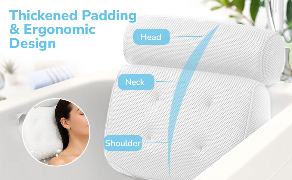 Experience true comfort with our ergonomically designed bath pillow that supports your head, neck, and shoulders. The thickened padding cradles your upper body, transforming every soak into a luxurious spa-like escape. Whether you're recovering from a long day or indulging in self-care, this pillow guarantees deep relaxation and lasting comfort.