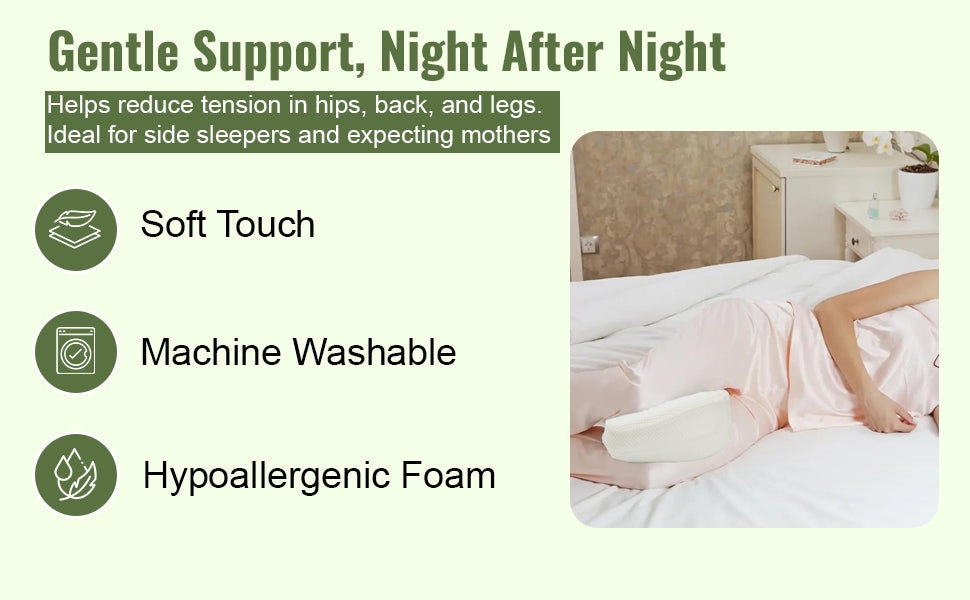 Crafted from hypoallergenic memory foam and wrapped in breathable bamboo fabric, the SereniComfort Knee Pillow is perfect for side sleepers seeking pain-free nights. Its ergonomic shape ensures your knees stay aligned while you sleep, relieving pressure and improving circulation.