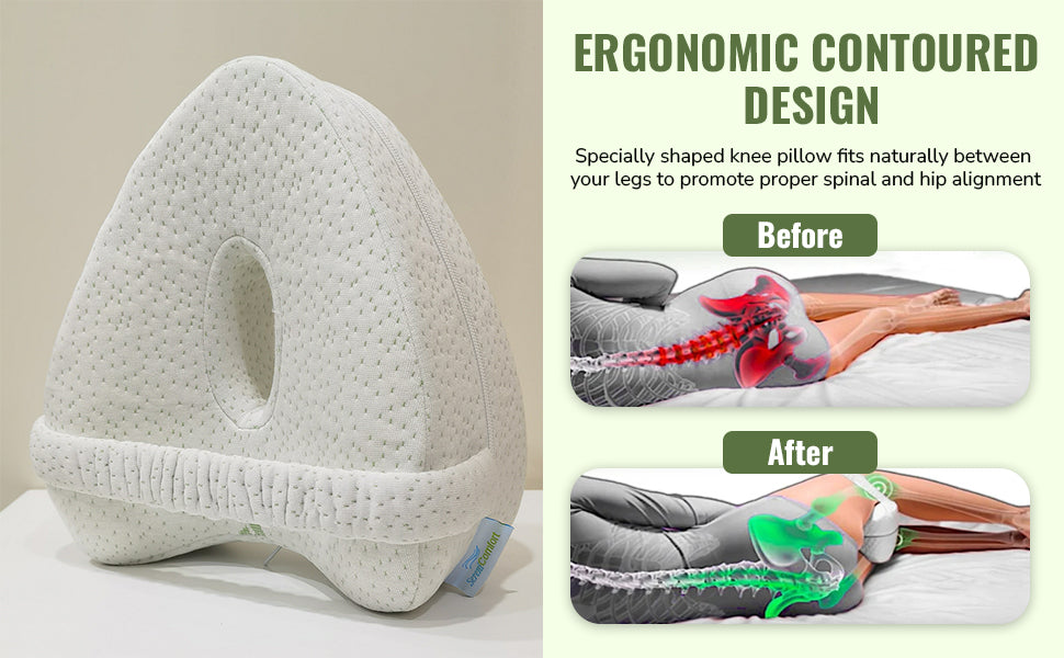 The SereniComfort® Knee Pillow is ergonomically contoured and made from premium high-density memory foam that molds to your body without losing shape over time. It also features a breathable, washable cover to keep you cool and comfortable all night.